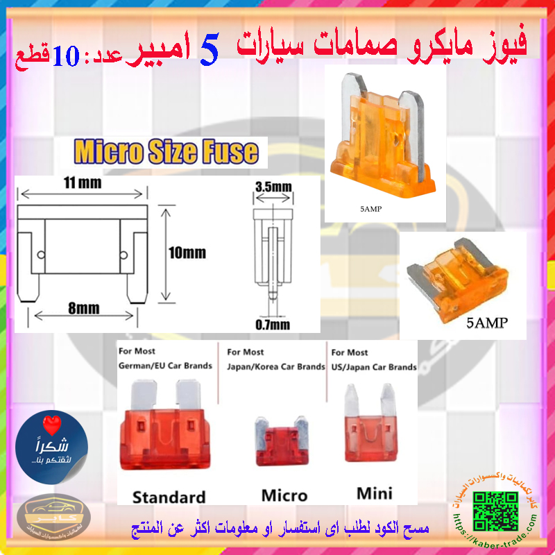بطاقة فييوز مايكرو مجموعة صمامات سيارات متنوعة ، مجموعة متنوعة من الصمامات البديلة للسيارات الصغيرة والشاحنات والقوارب – ( فيوز مايكرو – 5 امبير، 10 قطع)