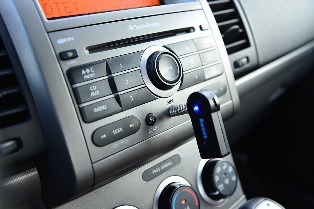 جهاز استقبال بلوتوث للسيارة بدون استخدام اليدين، محول ايه يو اكس بلوتوث 3.5 ملم لبث الموسيقى اللاسلكي للمنزل ونظام صوت السيارة وسماعة الراس ومكبر الصوت (بلوتوث 4.2، ايه 2 دي بي)