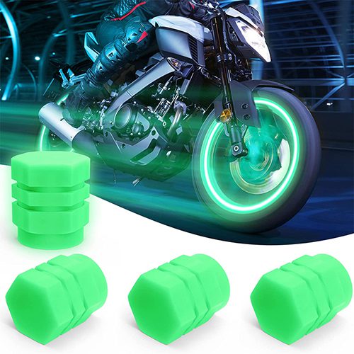 غطاء صمام بلف اطارات السيارة اخضر فسفور – مضئ وبينور فى الضلمة – 4 قطع مناسب لكل السيارات