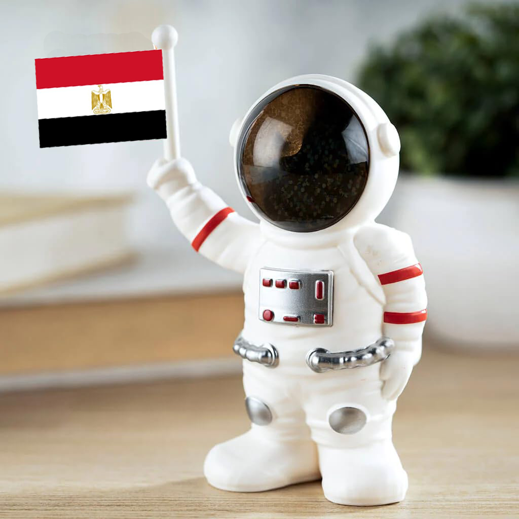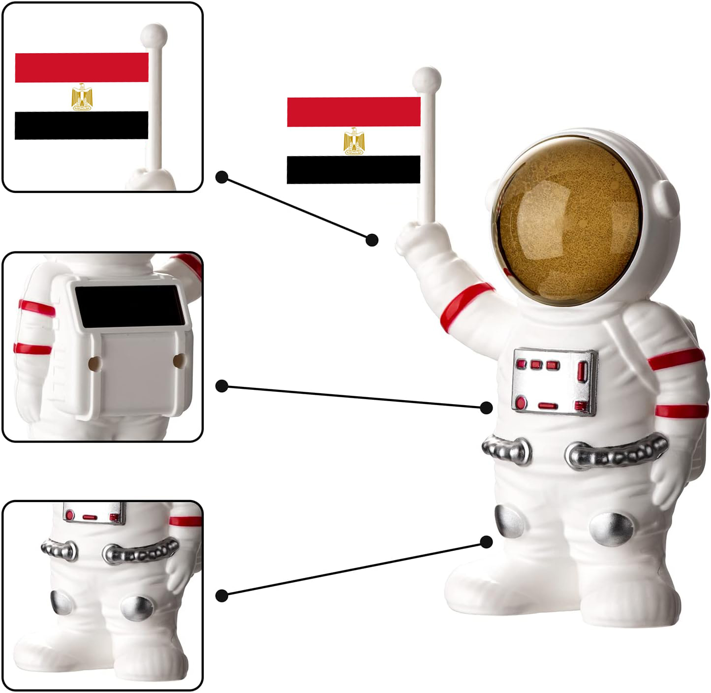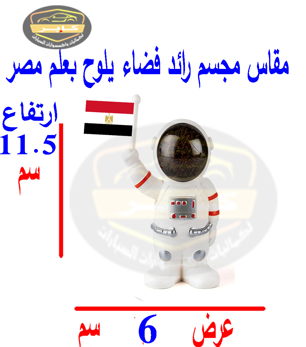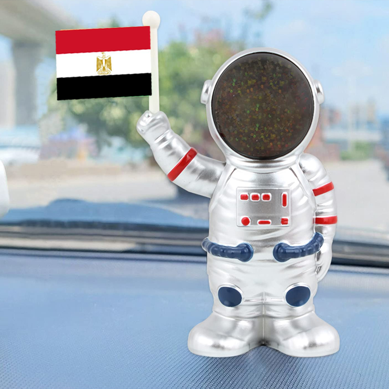 مجسم رائد فضاء يلوح ب علم مصر، رجل فضاء اكسسوار وزينة سيارة لطيفة، ديكورات تابلوة السيارة، يعمل بالطاقة الشمسية لتزيين السيارات، ديكور المكتب (فضى)