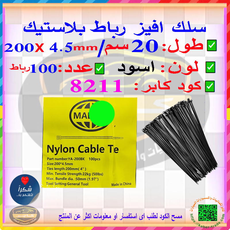 - ✅أربطة كابلات بلاستيكية، شديدة التحمل، شريط نايلون بلاستيكي ذاتي القفل ، تتوفر حزم الكابلات القياسية بقوة شد عالية، بأطوال وألوان متنوعة.