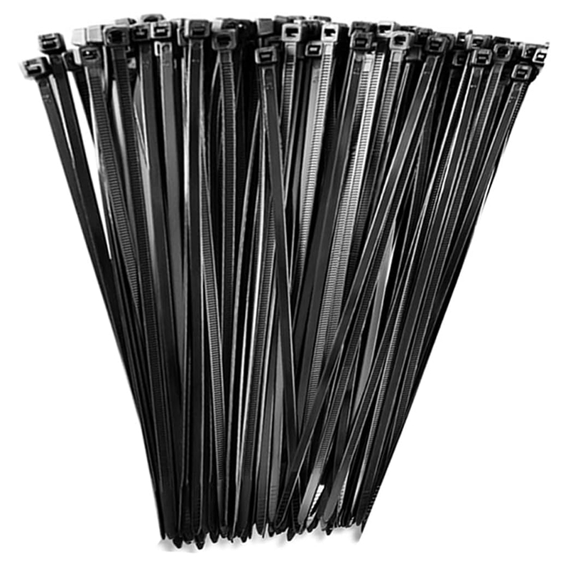 مجموعة اربطة كابلات متينة وذاتية الغلق وصغيرة من البلاستيك والنايلون (عدد 100 رباط ، مدين اسود ، طول 20سم )