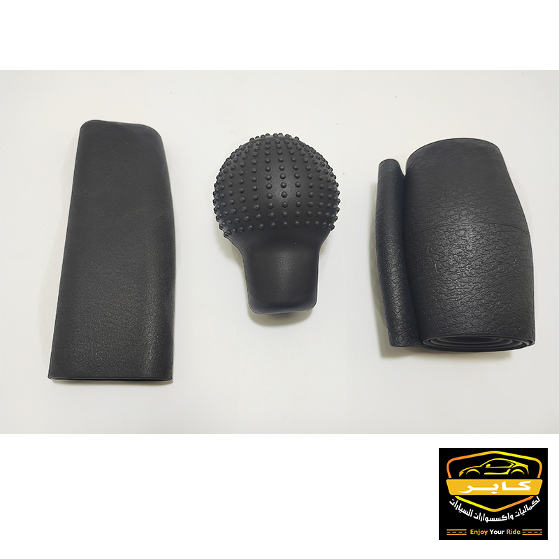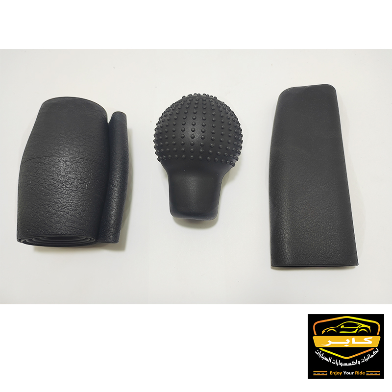 مجموعة انيقة وعملية من أغطية السيليكون لعجلة قيادة سيارتك ومقبض فرامل اليد ومقبض ناقل الحركة( لون اسود ، كود :9511)