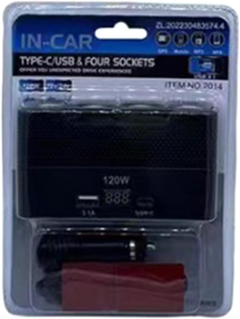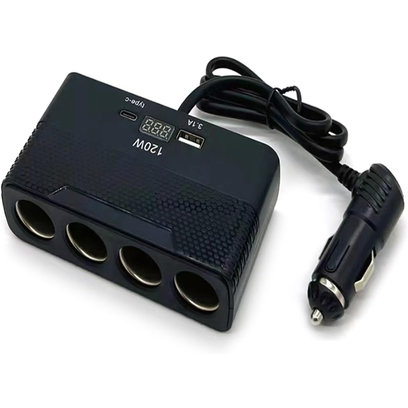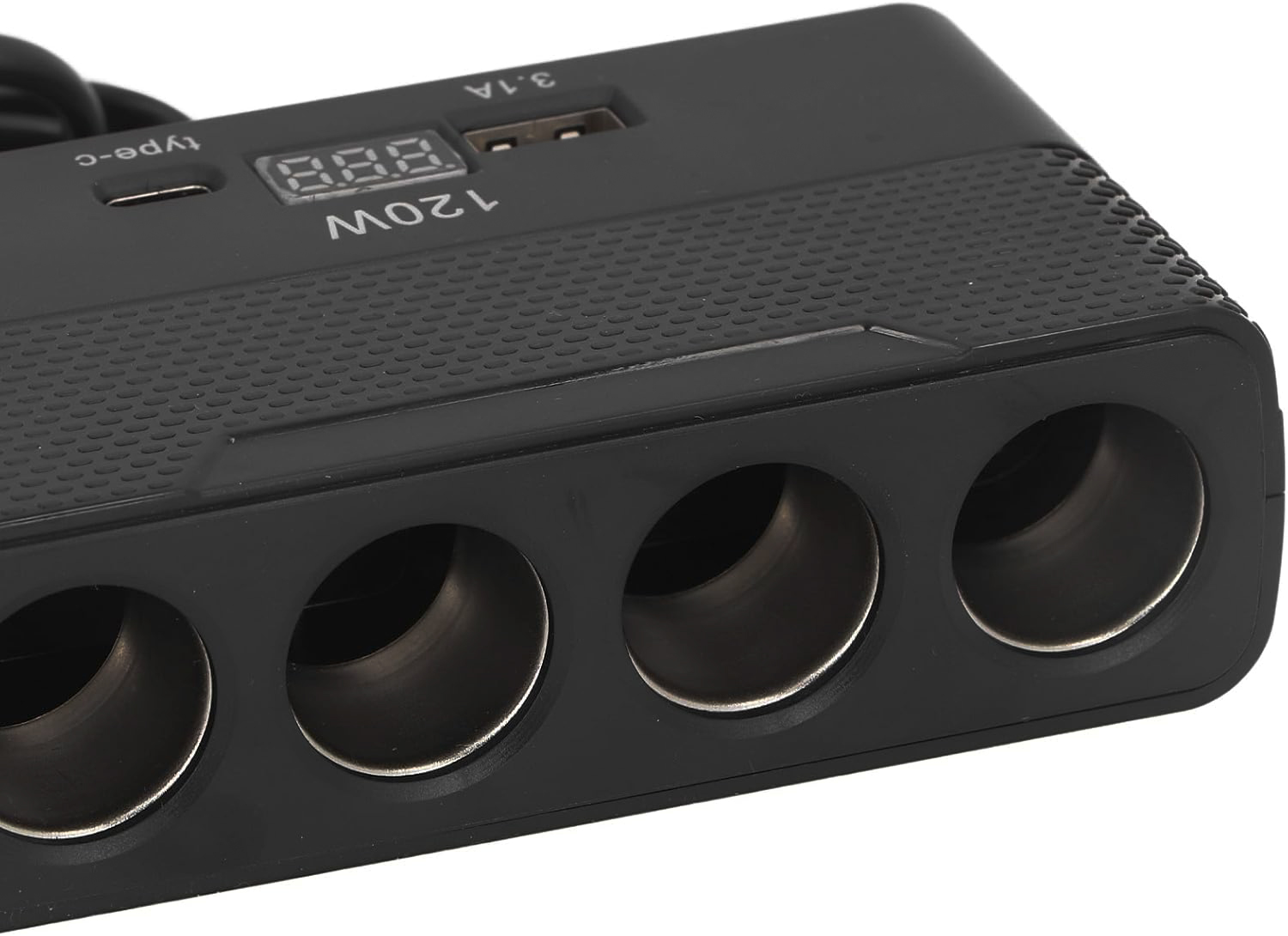 محول الولاعة فى السيارة ، متعدد الاستخدامات فى السيارات، موزع مقبس ولاعة السيارة ومنفذ شاحن USB ، قابس متعدد الفتحات، للسيارات والشاحنات (4Sockets+1USB+type-c)