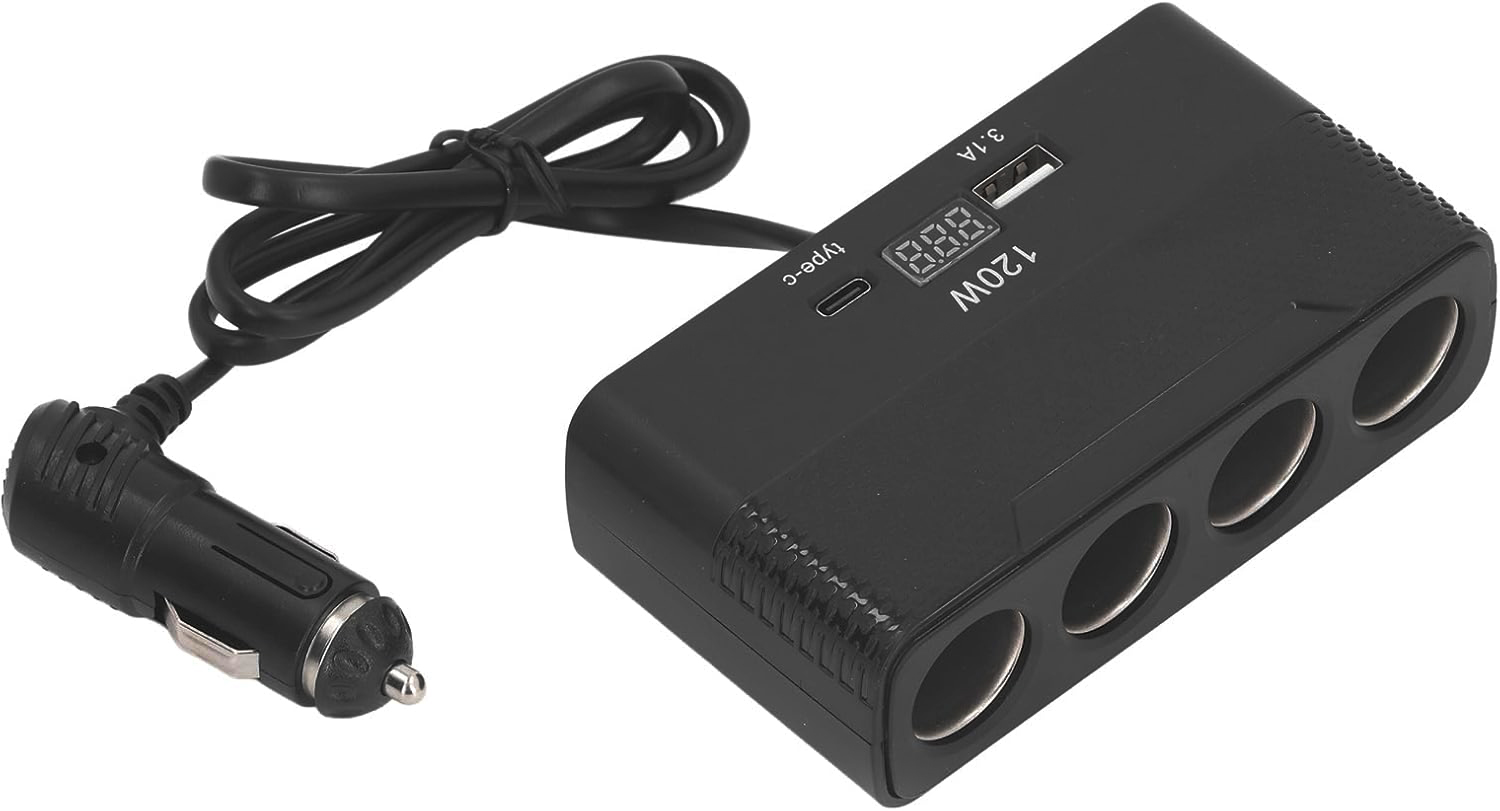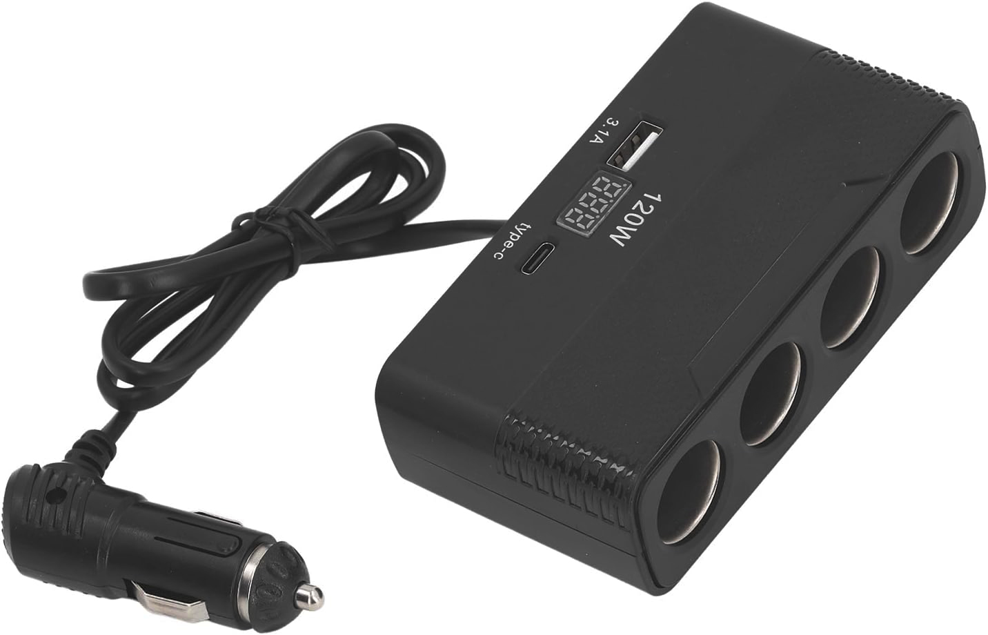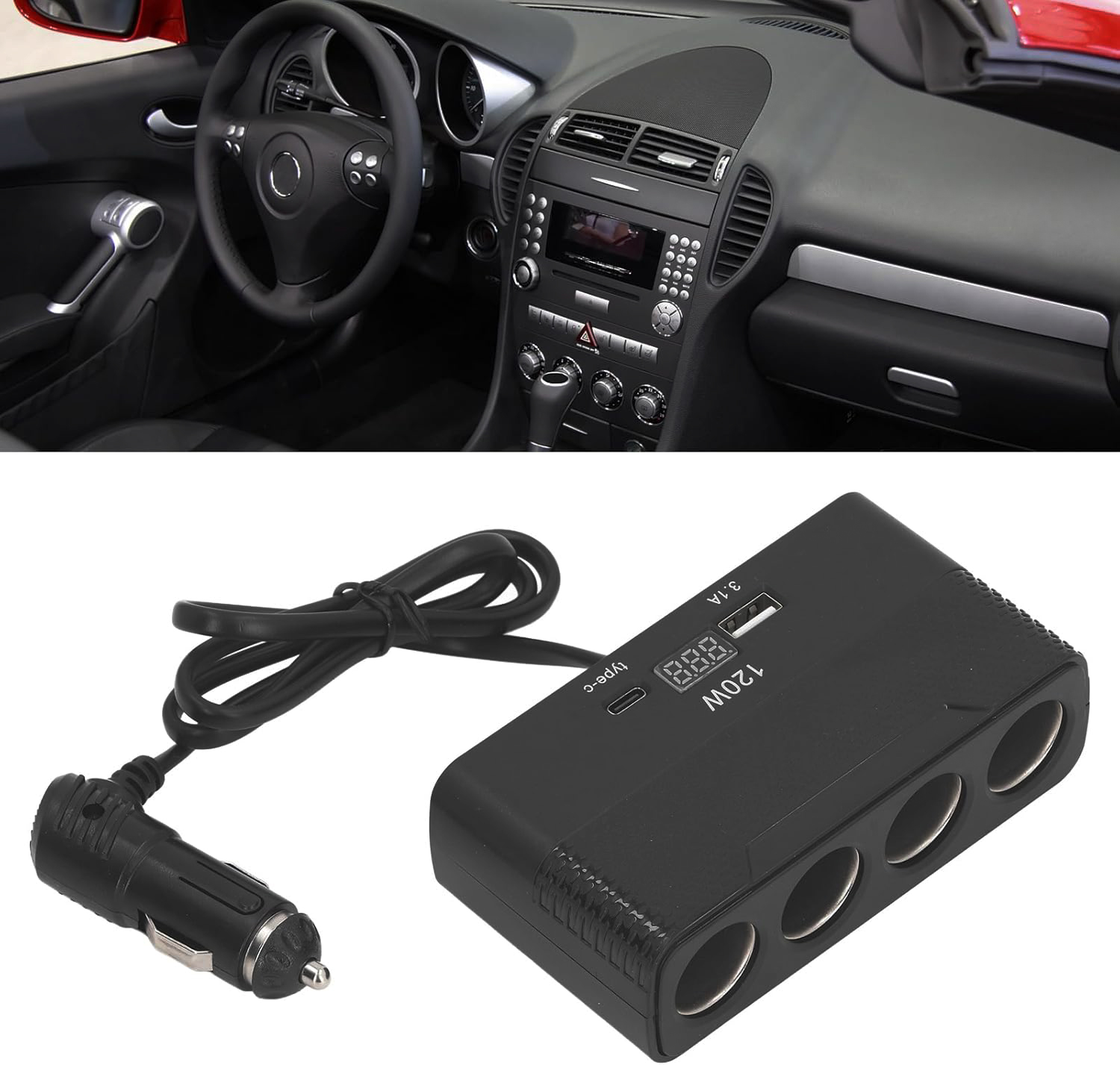 محول الولاعة فى السيارة ، متعدد الاستخدامات فى السيارات، موزع مقبس ولاعة السيارة ومنفذ شاحن USB ، قابس متعدد الفتحات، للسيارات والشاحنات (4Sockets+1USB+type-c)