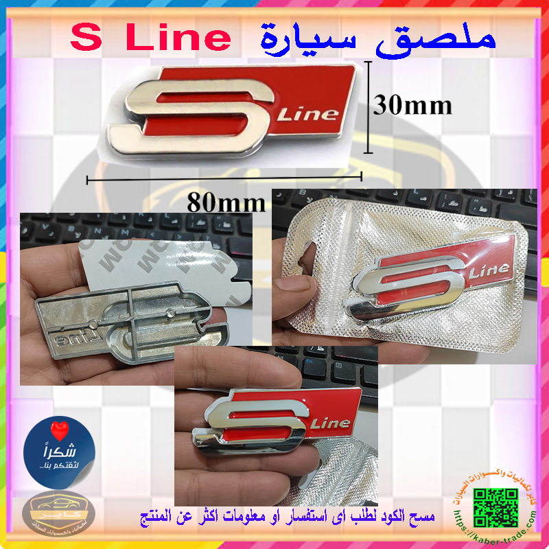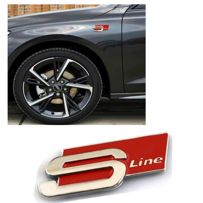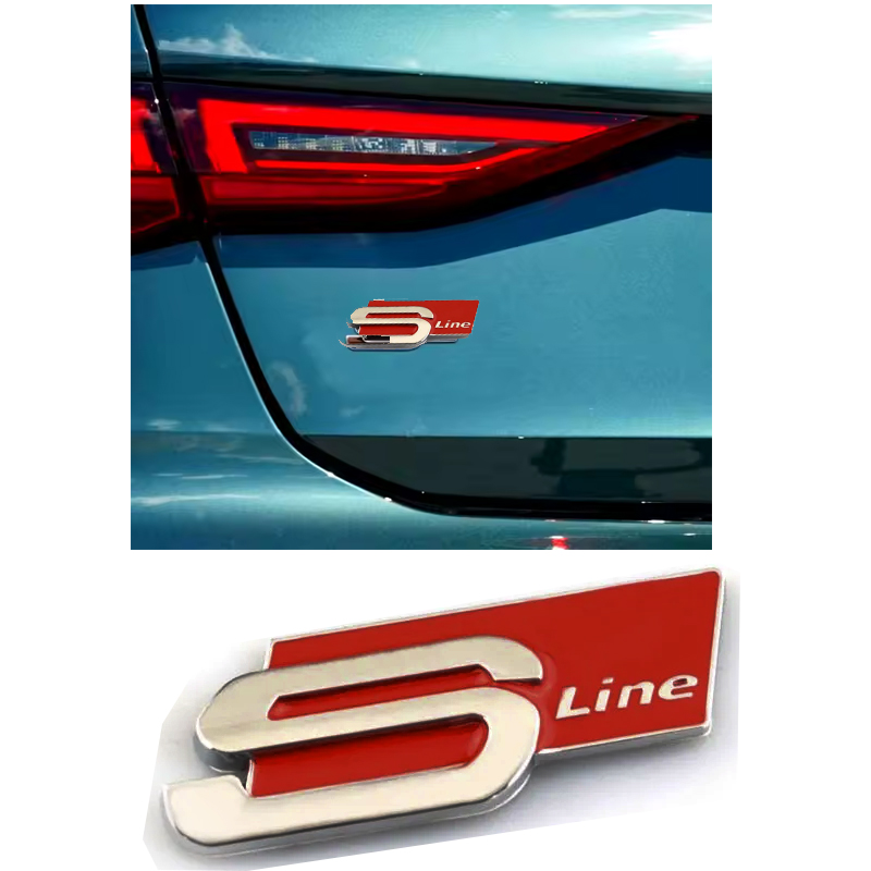 ملصق سيارة معدن ثلاثي الابعاد بعبارة S Line ، احمر فى فضى مقاس 8 *3 سم