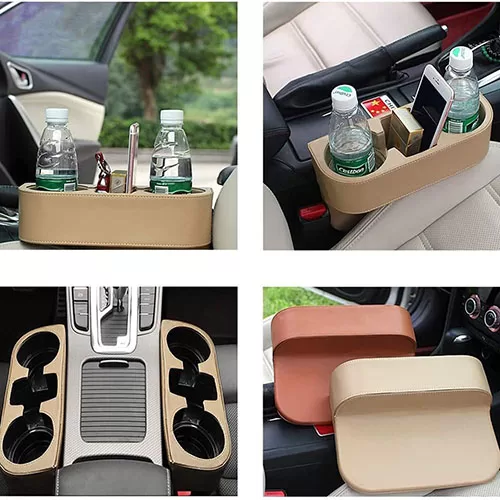 - √ مساحة تخزين إضافية – حاملان أكواب وجيب جانبي. يمكن استخدامه بين المقاعد الأمامية أو المقعد الأمامي ووحدة التحكم المركزية. قواعد أكواب للسيارة لحوامل الأكواب.