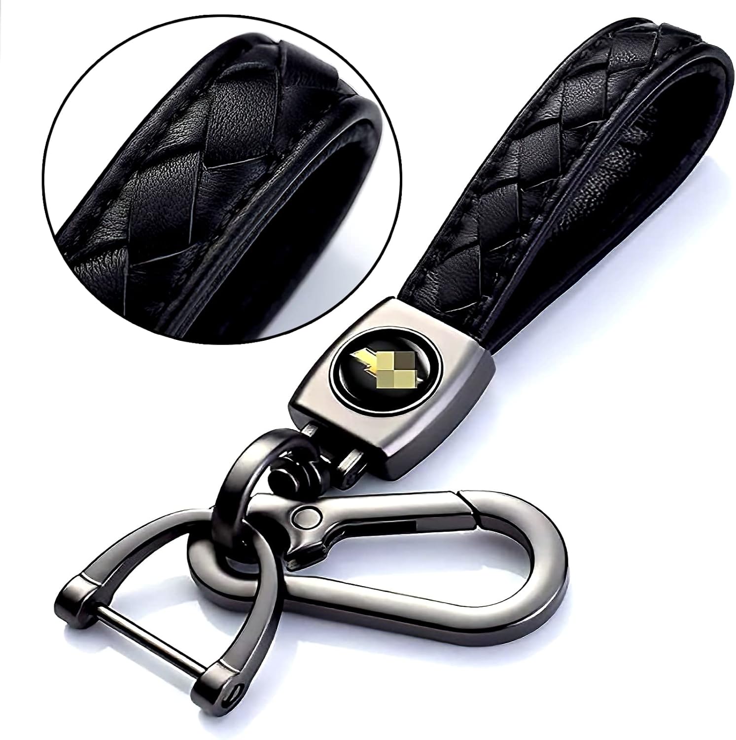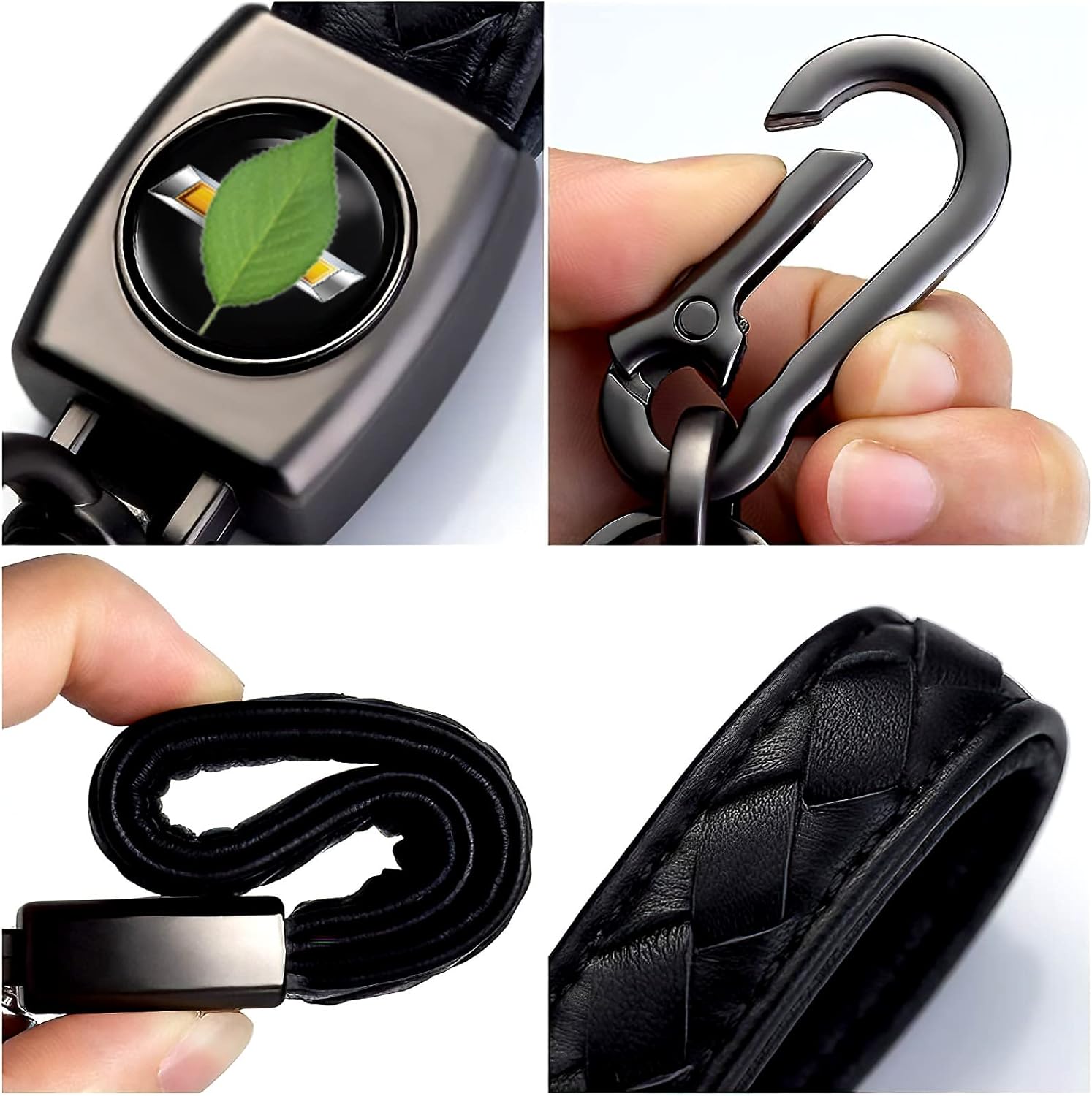 ميدالية وسلسلة مفاتيح سيارة جلد مضفرة متوافقة مع – شيفرولية – لون اسود