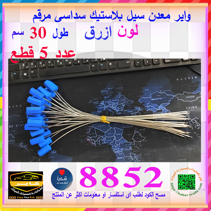 اربطة امان واير معدن شديدة التحمل مرقمة ، سيل متسلسل ، للشاحنات والمقطورات والحقائب والصناديق وغيرها (سيل واير معدن سداسى ازرق ، طول 30 سم ، عدد 5 قطع ، كود : 8852)