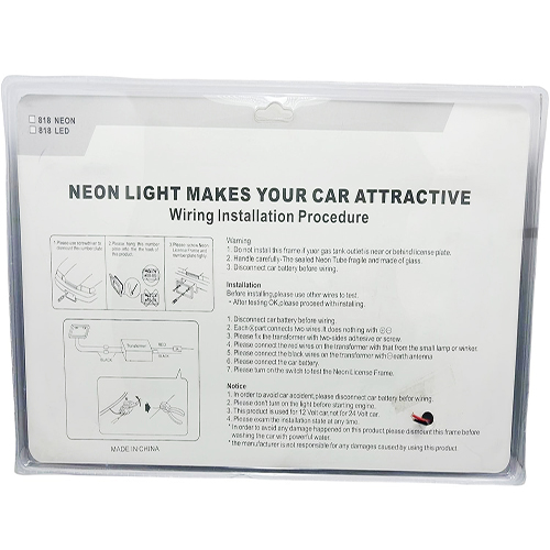 - إطار لوحة ترخيص السيارة أضاءة نيون ساطع يساعد على جعل لوحة الترخيص الخاصة بك مرئية، ويتم تركيبها خلف لوحة الترخيص أو إطار لوحة الترخيص الموجود.