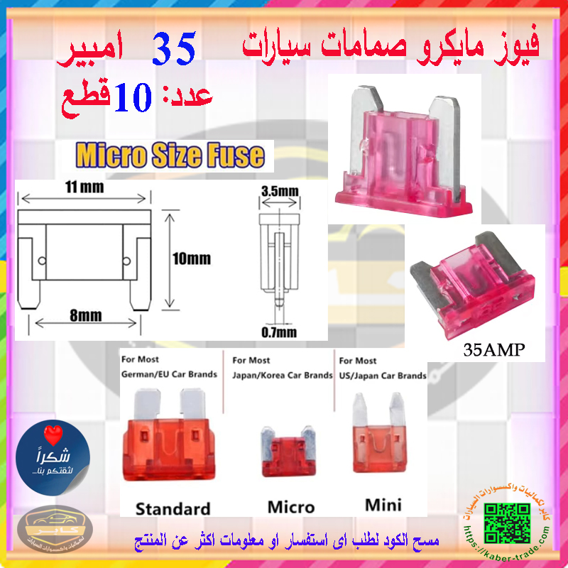 بطاقة فييوز مايكرو مجموعة صمامات سيارات متنوعة ، مجموعة متنوعة من الصمامات البديلة للسيارات الصغيرة والشاحنات والقوارب – ( فيوز مايكرو – 35 امبير، 10 قطع)