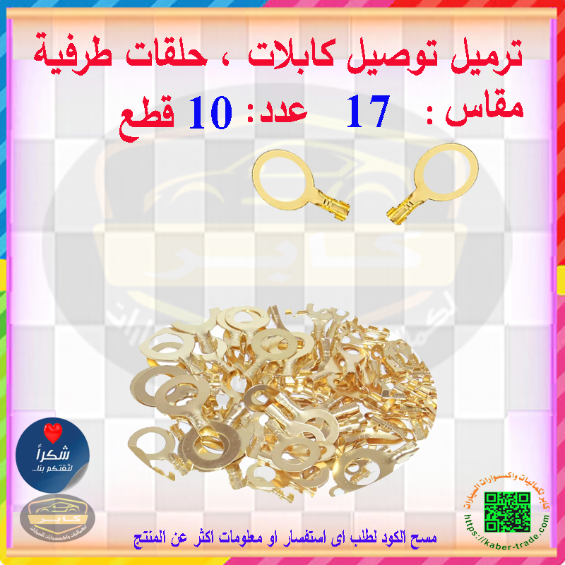 موصلات كابلات ، حلقة طرفية كابل ، ترميل حلقة العروات موصلات الاسلاك والكابلات ( ترمل/ ترملة مقاس 17 ، عدد : 10 قطع )