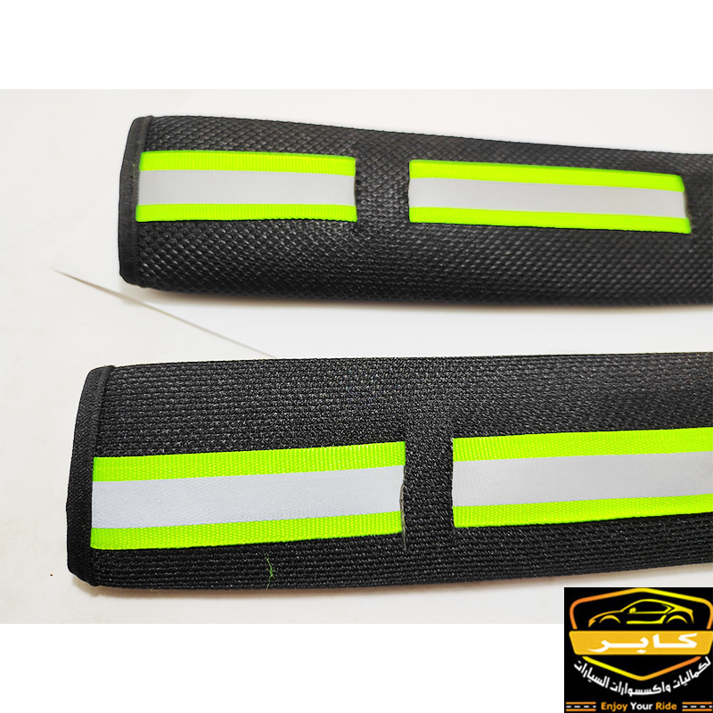 حافظة وغطاء لأحزمة امان مقاعد السيارة، مصممة لتناسب جميع السيارات ( 2 قطعة ، اسود شريط عاكس ، كود : 9163)