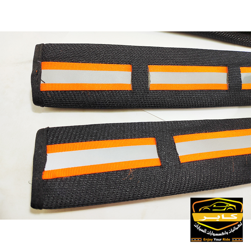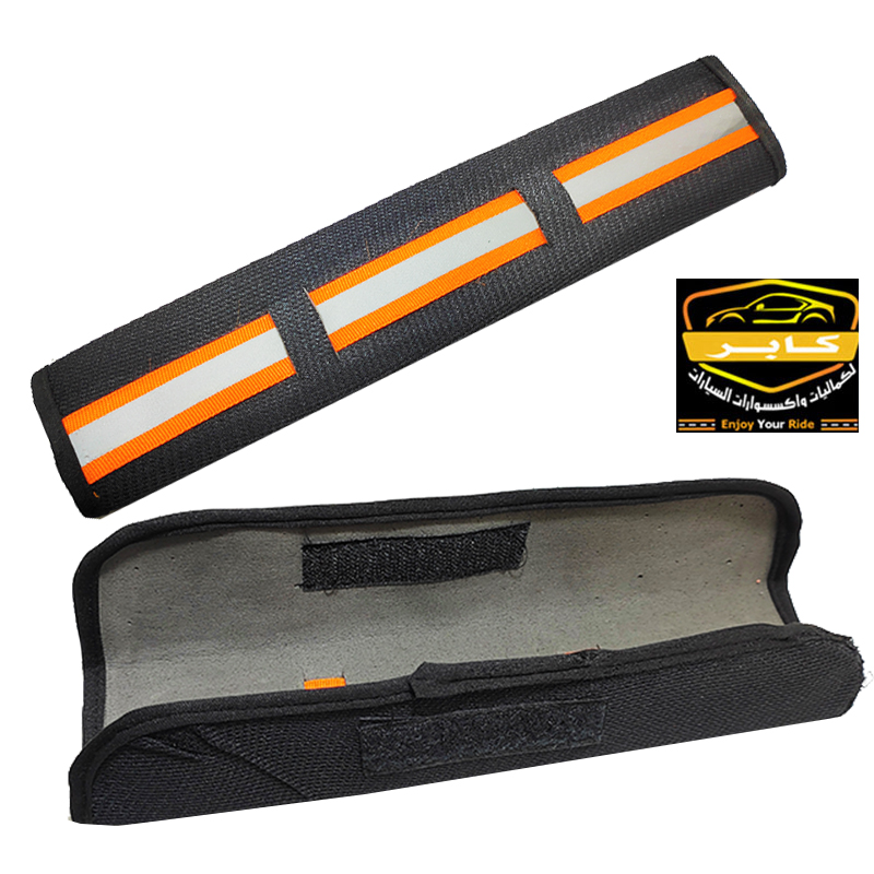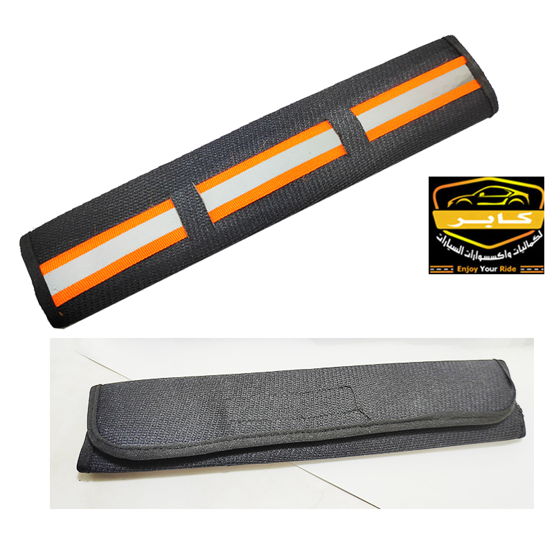 حافظة وغطاء لأحزمة امان مقاعد السيارة، مصممة لتناسب جميع السيارات ( 2 قطعة ، اسود شريط عاكس ، كود : 9162)