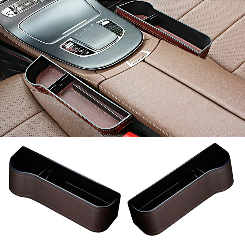 حامل اكواب مشروبات عالمي لمقعد السيارة والشاحنة وصندوق تخزين المشروبات والزجاجات والطعام ، صندوق تخزين منظم للسيارة، بتصميم متعدد الوظائف (2 قطعة اتجاة يمين و يسار- بنى غامق)