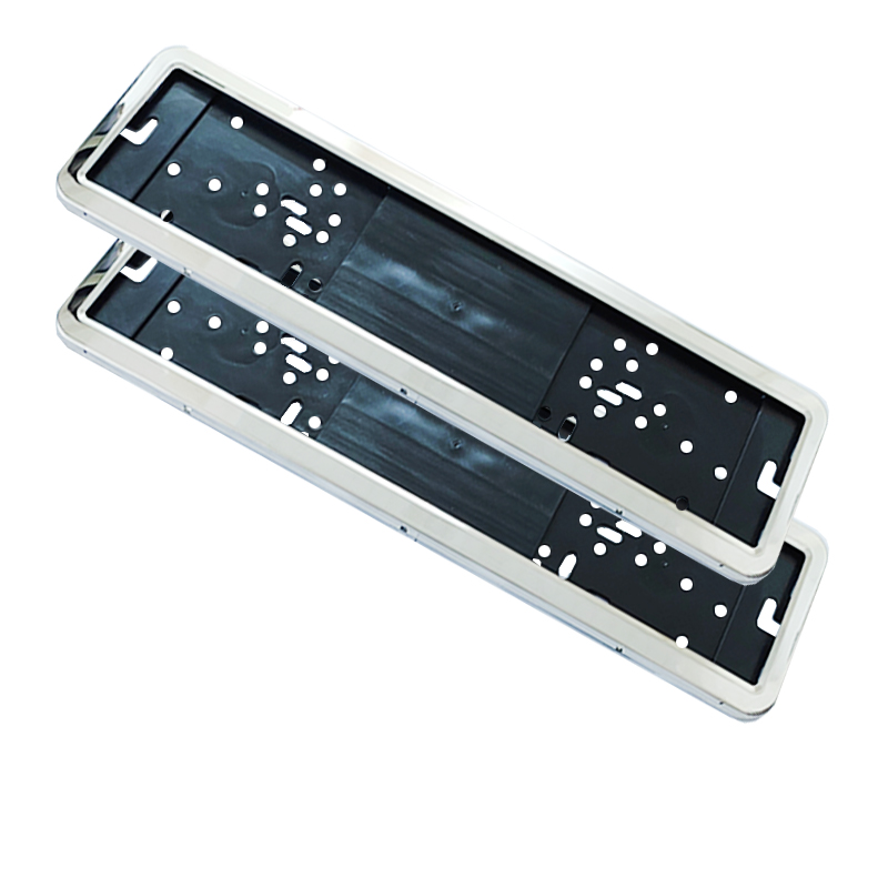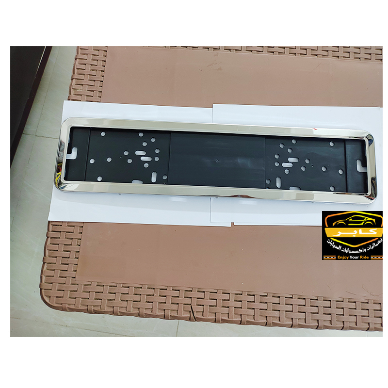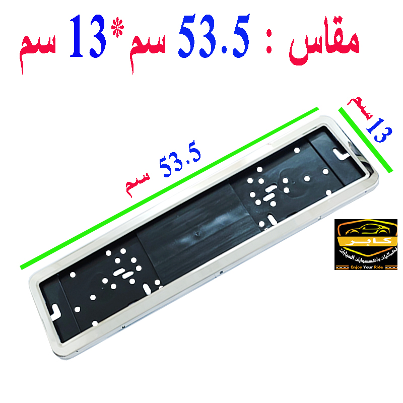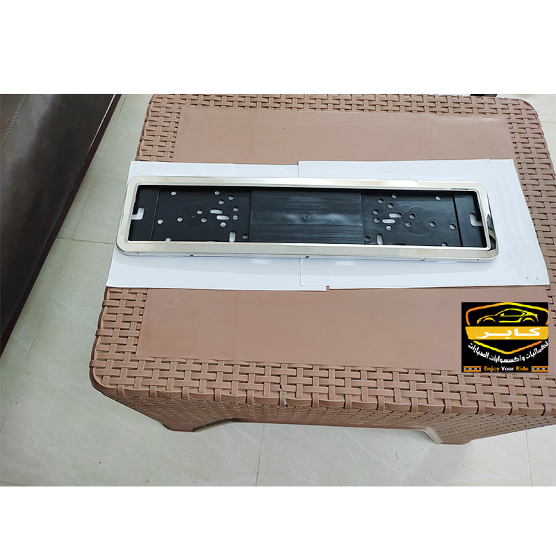 حامل لوحة ترخيص امامية وخلفية للسيارات بشكل مستطيل كبير(2 قطعة ، بلاستيك اطار استانلس، مقاس 53.5 سم فى 13 سم ، كود : 9133)
