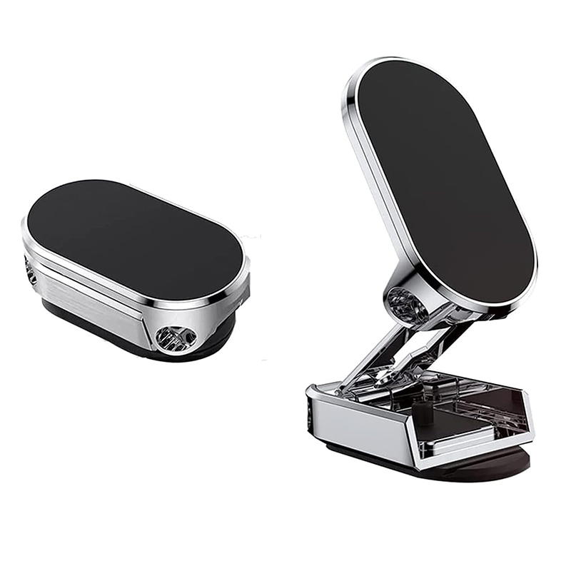 حامل موبايل مغناطيسي معدني للسيارة والمكتب والمنزل بقاعدة ، دوارن 360 درجة، قابل للطي مع أذرع قابلة للتعديل ( سلفر ، كود :8277)