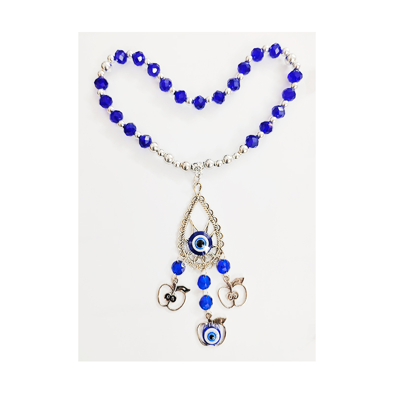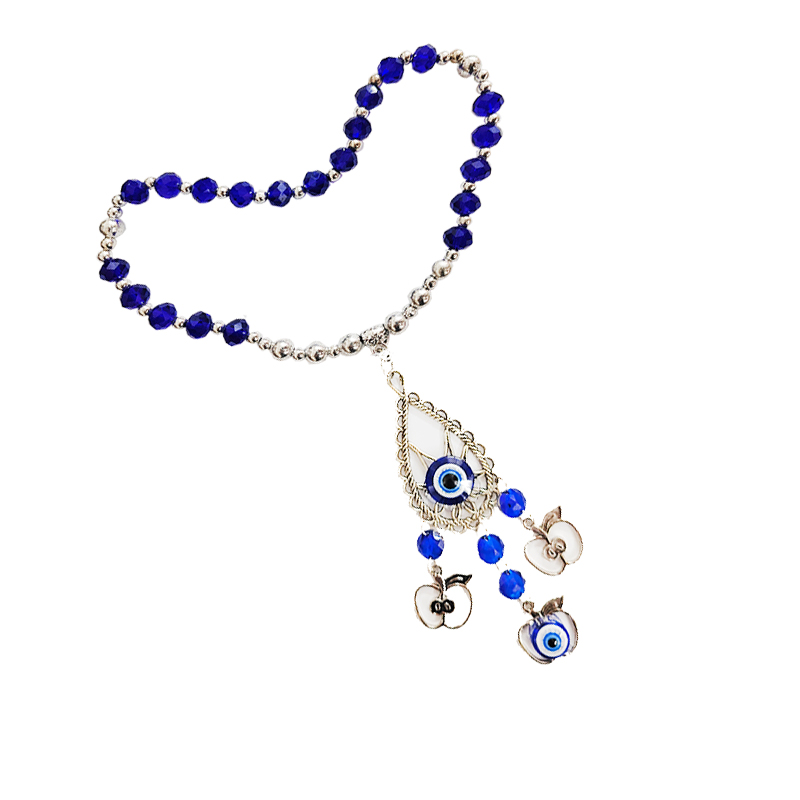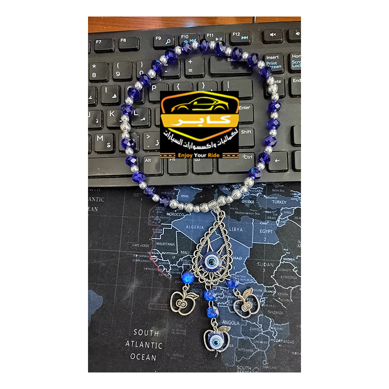 دلاية علاقة سبحة خرز عين ازرق فى سلفر للسيارة والمكتب والمنزل – معدن مع دلايات متعددة ومتنوعة الاشكال ( قطعة واحدة عبارة ، كود: 9181)