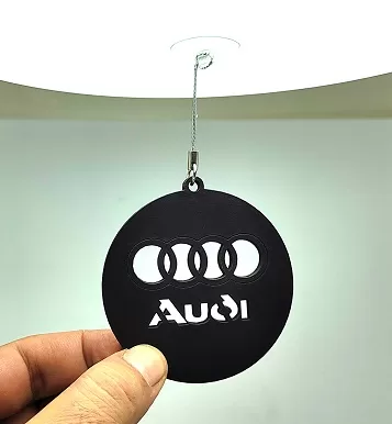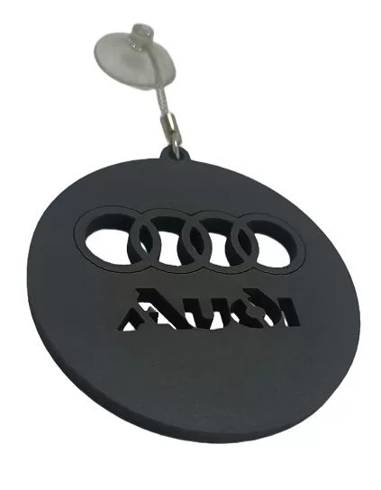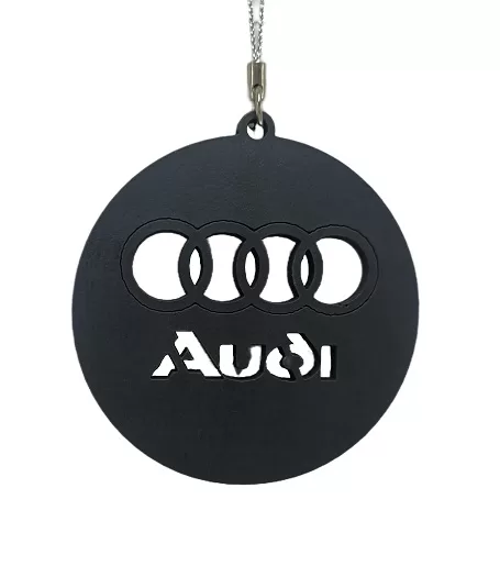 دلاية وعلاقة سيارة خشب مودرن للسيارات والشاحنات متوافقة مع شعار اودى – دائرية مقاس 7 سم-