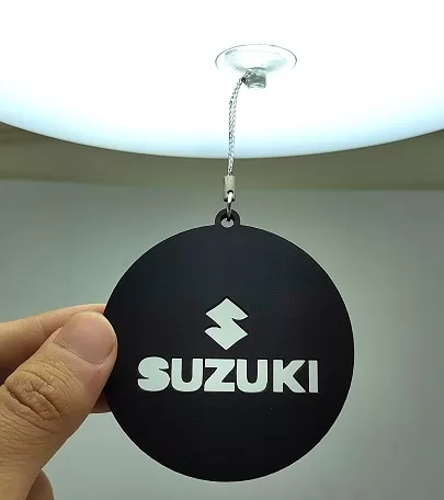 دلاية وعلاقة سيارة خشب مودرن للسيارات والشاحنات متوافقة مع شعار سوزوكى – دائرية مقاس 7 سم –