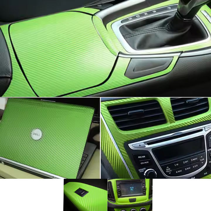 رول استيكر فينيل كاربون للسيارات ومتعدد الاستخدامات لتزيين وتغليف الاجهزة والموبايلات وغيرها (لون كاربون اخضر ، طول 2 متر ، عرض 30 سم)