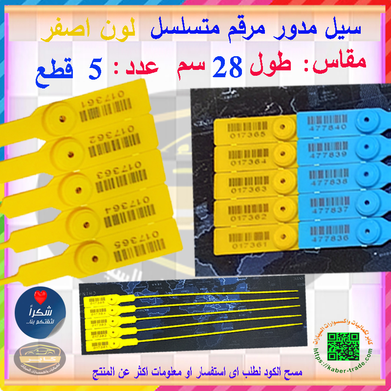 سدادات واقية بلاستيكية مقاومة للتلاعب ذاتية الاغلاق ، سيل مسريل ، مجموعة سدادات امان بلاستيك (سيل مدور لون اصفر ، طول 28سم ، عدد 5 قطع )