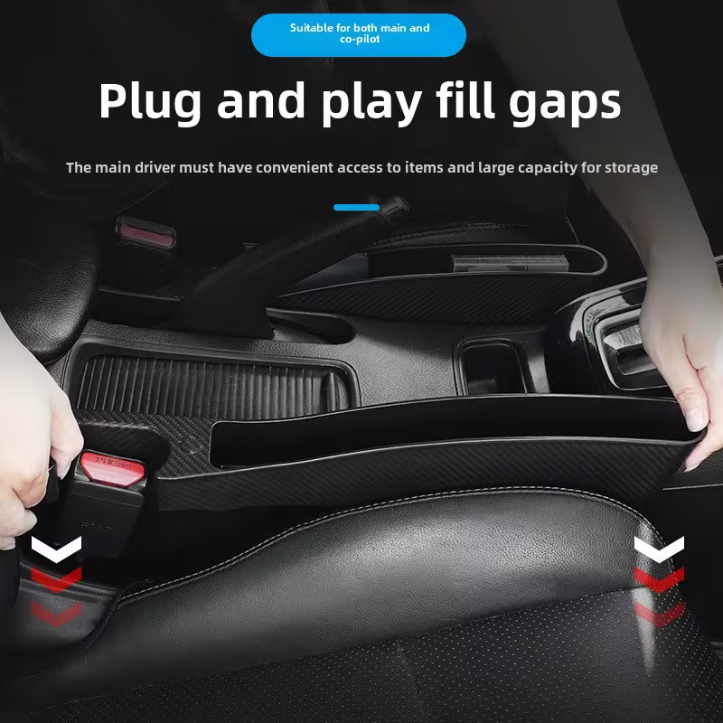 سداد فراغات جانبي لمنع سقوط الأشياء مع فتحة لحزام الأمان( 2 قطعة بلاستيك كاربون اسود ، كود : 9628)
