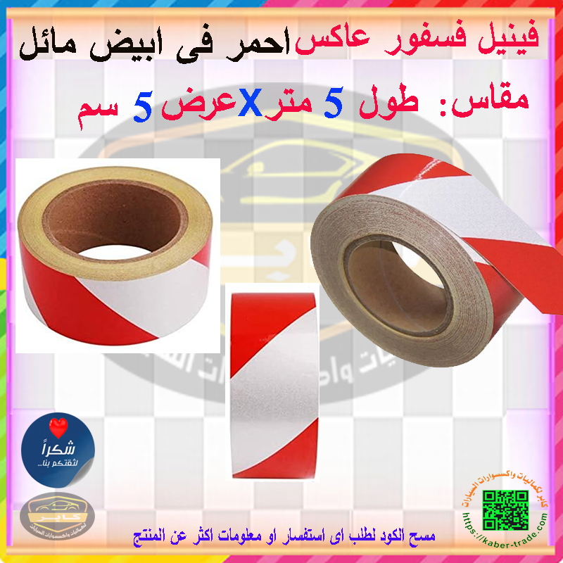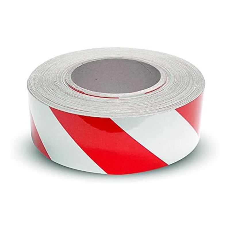 شريط تحذير للسلامة عاكس للضوء علامات ذاتي اللصق ملصق عالي الكثافة للسيارة والشاحنة (فينيل فسفور لون احمر فى ابيض مائل ، طول 5 متر ، عرض 5 سم)
