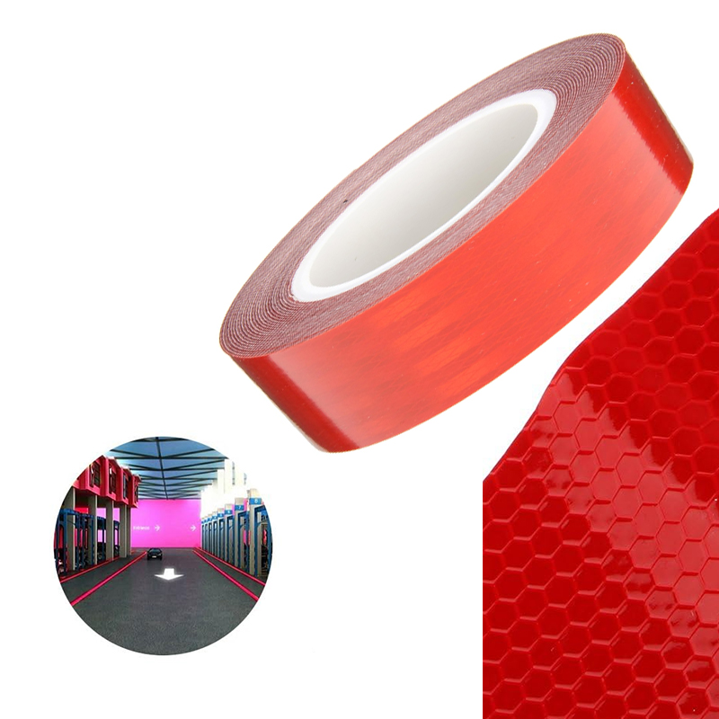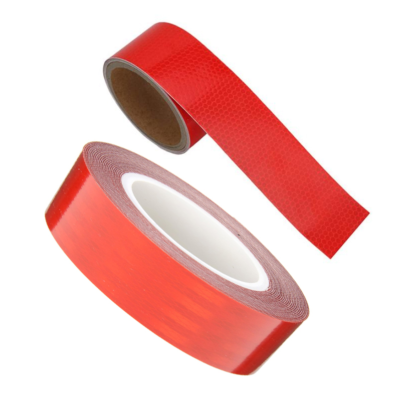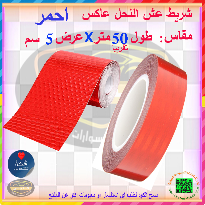 شريط عاكس ، تقنية منشورية مع مكعبات من البلورات الدقيقة يزيد من السطوع ويكون واضحًا بشكل في الليل (عش النحل لون احمر ، طول 50 متر، عرض 5 سم)