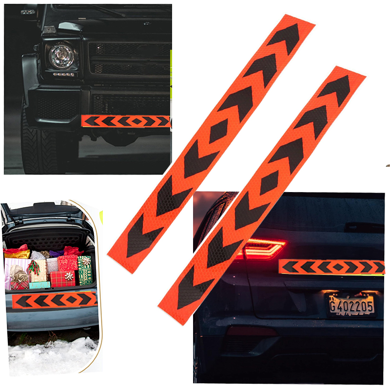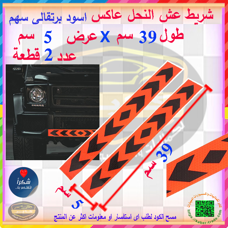 شريط عاكس ، تقنية منشورية مع مكعبات من البلورات الدقيقة يزيد من السطوع ويكون واضحًا بشكل في الليل (عش النحل سهم اسود فى برتقالى ، طول 39 / 5 سم ، عدد 2 شريط)