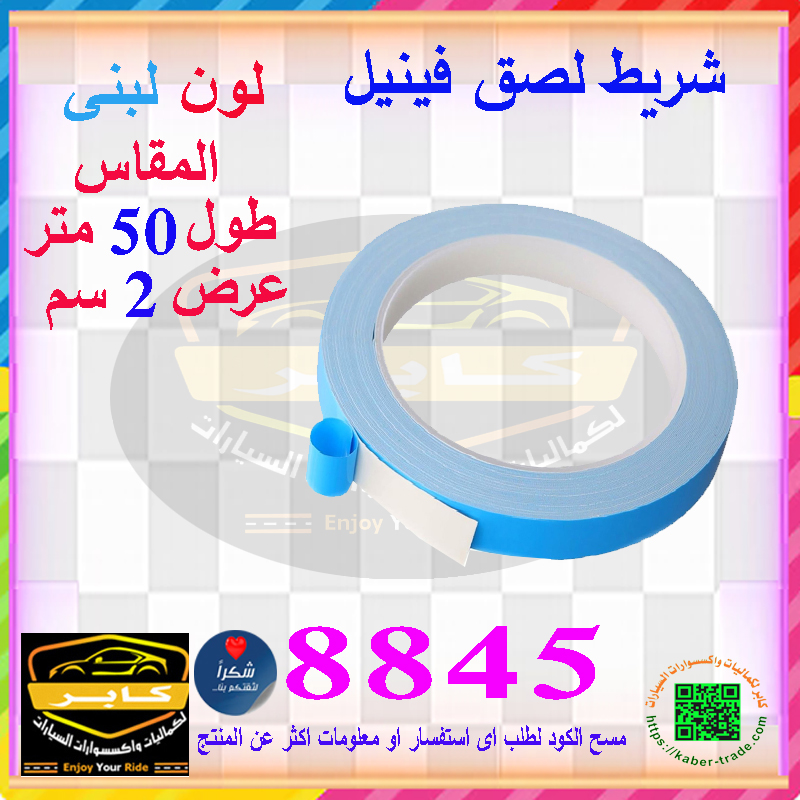 شريط لاصق فينيل للسيارات والدراجات والشاحنات وغيرها (لون لبنى ، طول 50 متر، عرض 2 سم ، كود : 8845)