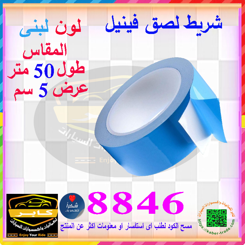 شريط لاصق فينيل للسيارات والدراجات والشاحنات وغيرها (لون لبنى ، طول 50 متر، عرض 5 سم ، كود : 8846)