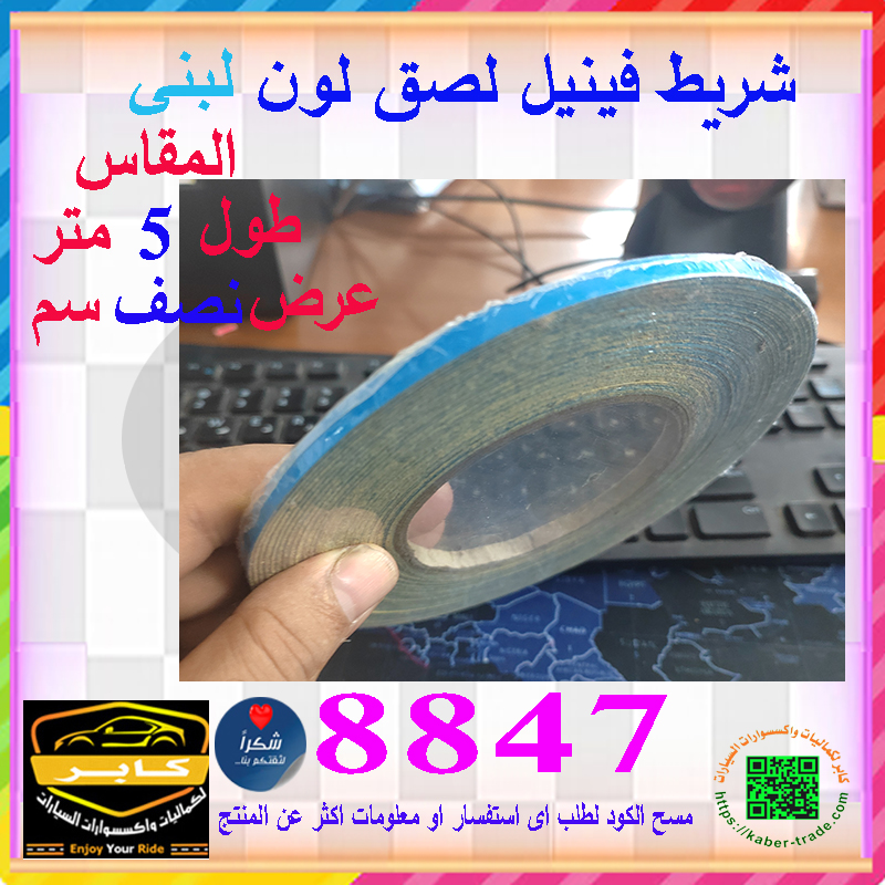 شريط لاصق فينيل للسيارات والدراجات والشاحنات وغيرها (لون لبنى ، طول 50 متر، عرض 1/2 سم (نصف سم ) ، كود : 8847)