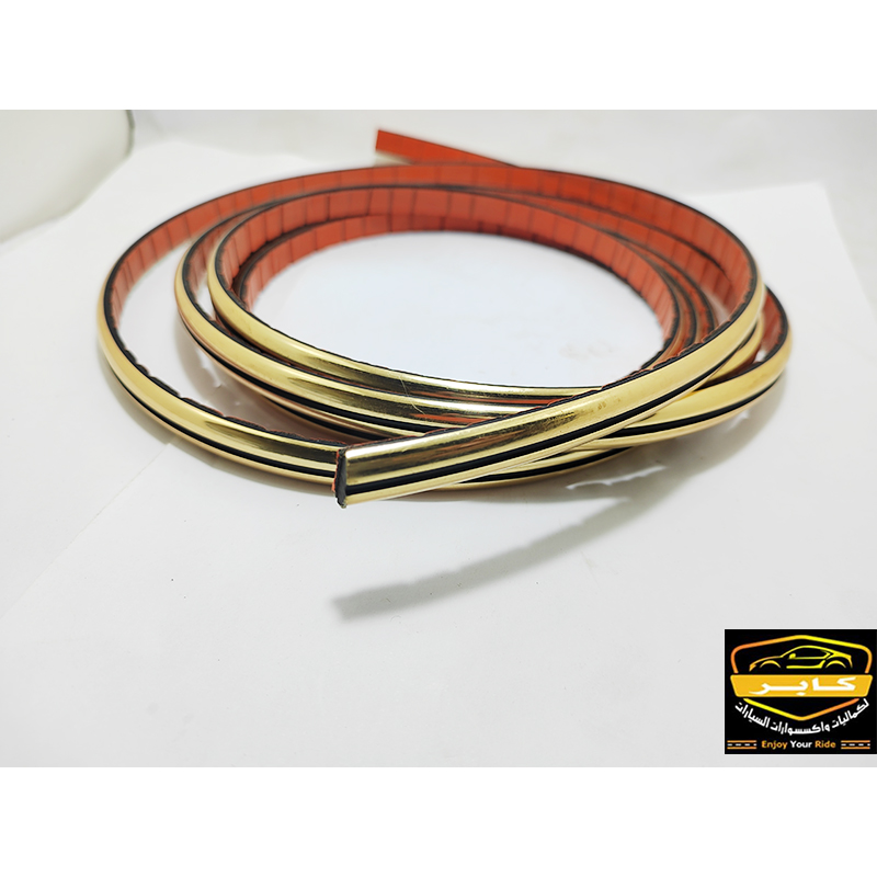 شريط لاصق من الكروم ، ديكور وتزيين السيارة من الداخل والخارج وايضا يستخدم فى المنازل والمكاتب ، متعدد الاستخدامات(ذهبى خط اسود ، طول 3 متر عرض 1 سم)