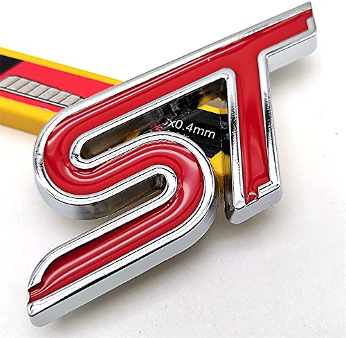 شعار سيارة ST ، ELECDON 1 قطعة ثلاثية الأبعاد لتصفيف السيارات المعدنية شعار ST شعار السيارة اكسسوارات السيارة (أحمر فضي)