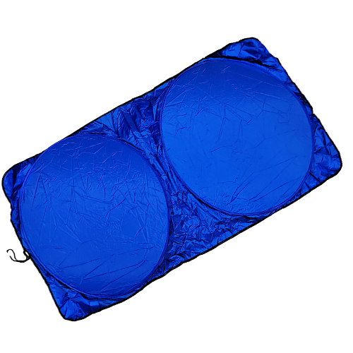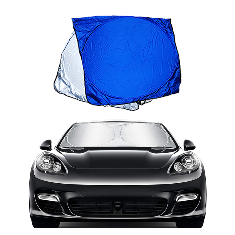 مظلة لزجاج مقدمة السيارة للحماية من الاشعة فوق البنفسجية والحرارة، مظلة حماية عاكسة قابلة للطي ( دائرية وجة سلفر ووجة ازرق ، 150* 70 سم ، كود : 5556)