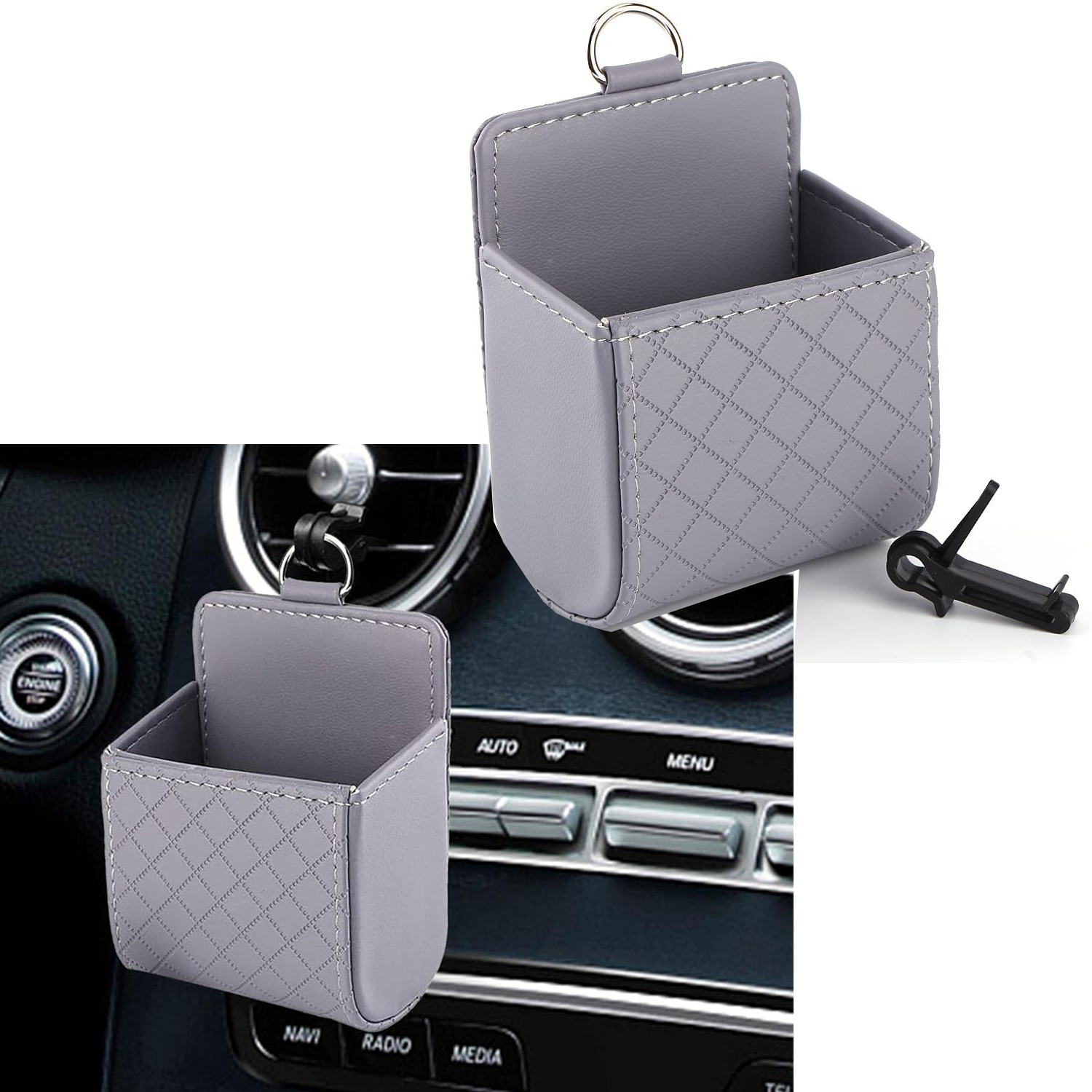 - سهل التركيب: ما عليك سوى تعليقها أو تركيبها على منفذ مكيف الهواء في السيارة. لا تسقط بسهولة بعد التركيب وسهلة الإزالة. مع جيب التخزين هذا، يمكنك التأكد من عدم وجود المزيد من الفوضى بسبب الأشياء الصغيرة!