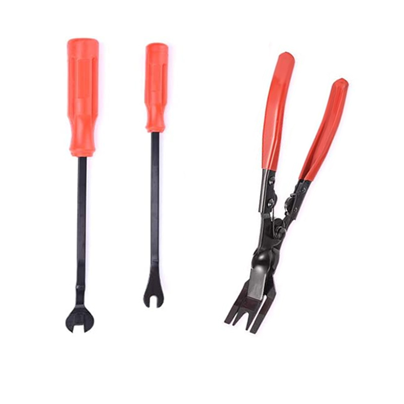 - ✅طقم احترافي مخصص لمراكز العناية بالسيارات. يحتوي على مجموعة من 3 قطع من الأدوات التي تُستخدم لفك وتركيب الكلبسات بدقة دون خدش أو ضرر.