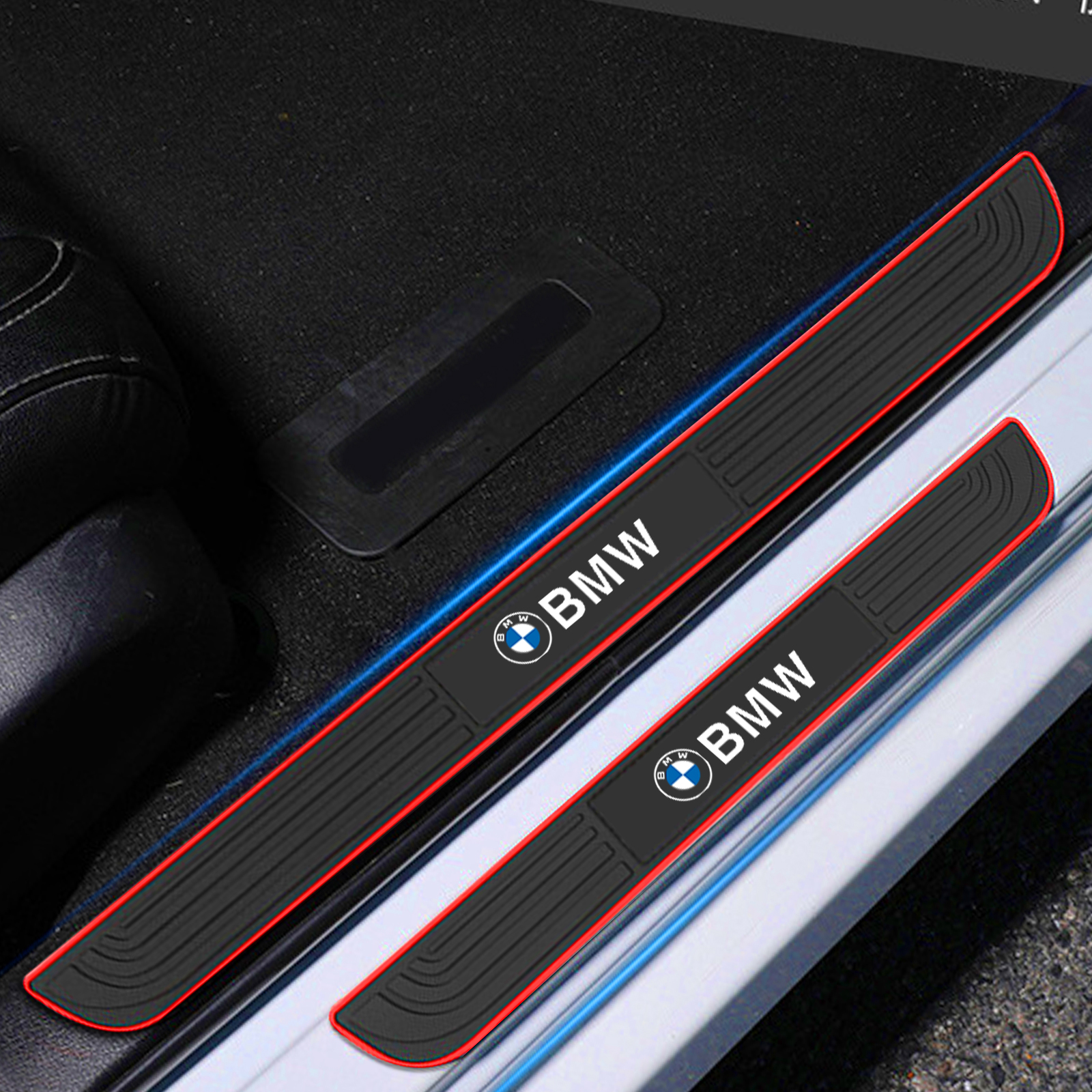 طقم عتب باب سيارة سيليكون ، مجموعة من 4 قطع من وسائد حماية عتبة باب السيارة، ملصق عتب باب السيليكون لحماية باب السيارة متوافق مع بى ام BM