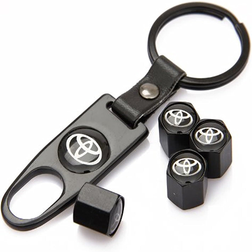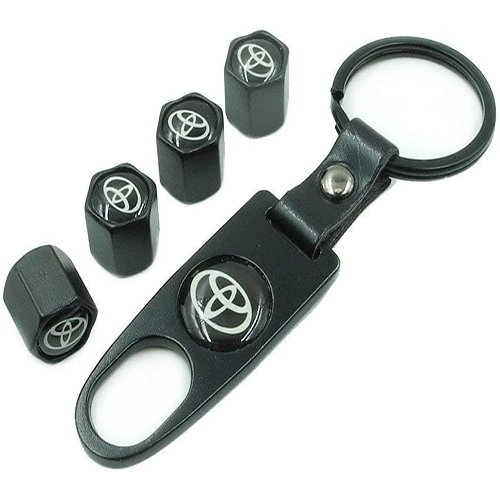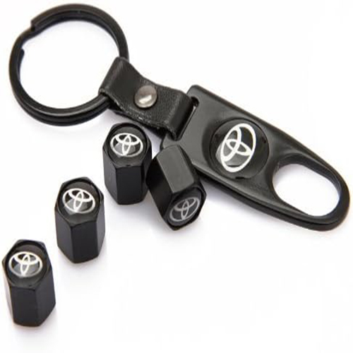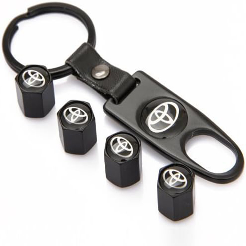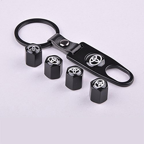 طقم غطاء صمام بلف اطارات السيارات 4 قطع مع ميدالية معدن ، مناسبة لاطارات السيارات والدراجات والدراجات النارية متوافق مع تويوتا اسود