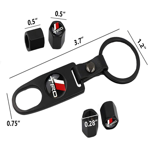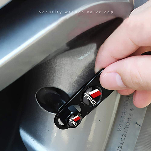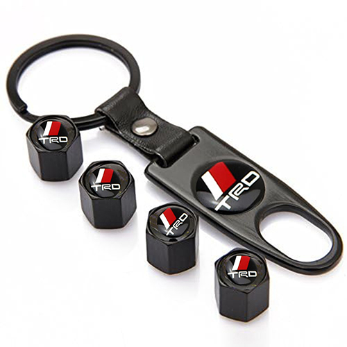 طقم غطاء صمام بلف اطارات السيارات 4 قطع مع ميدالية معدن ، مناسبة لاطارات السيارات والدراجات والدراجات النارية متوافق مع تويوتا TRD