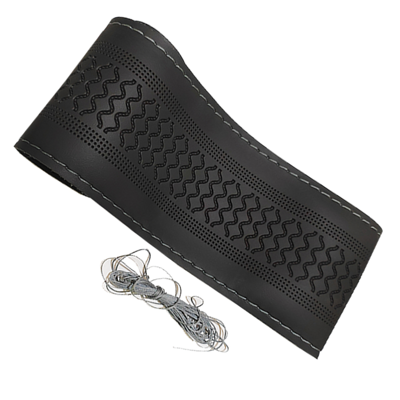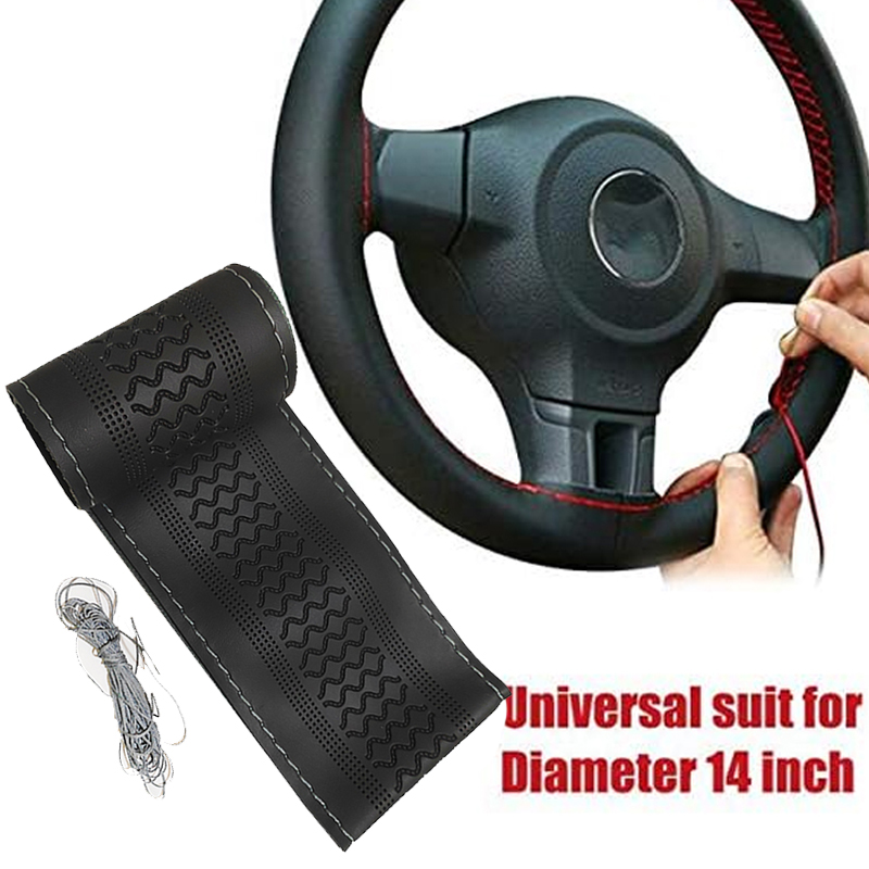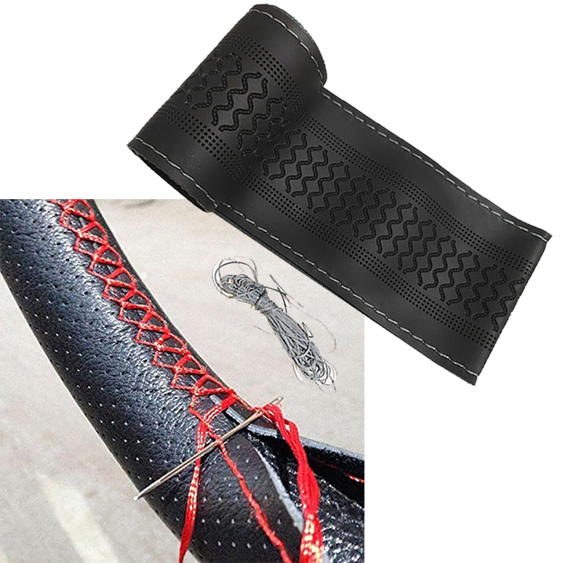 طقم غطاء طارة دركسيون بخياطة يدوية من الجلد الناعم للسيارة 37-38 سم مع ابر وخيوط لمشاريع اصنعها بنفسك -( لون اسود كود : 8269)