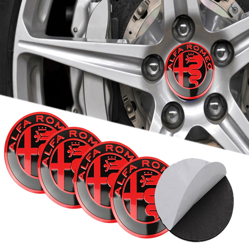 طقم غطاء محور اطارات السيارة لصق مقاس 56 ملم، أغطية مقاومة للغبار والصدأ والماء، ملحقات لاصقة لتزيين جنط العجلة – متوافق مع الفاروميو احمر