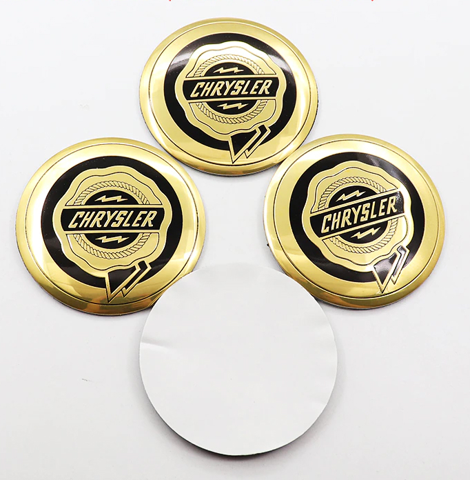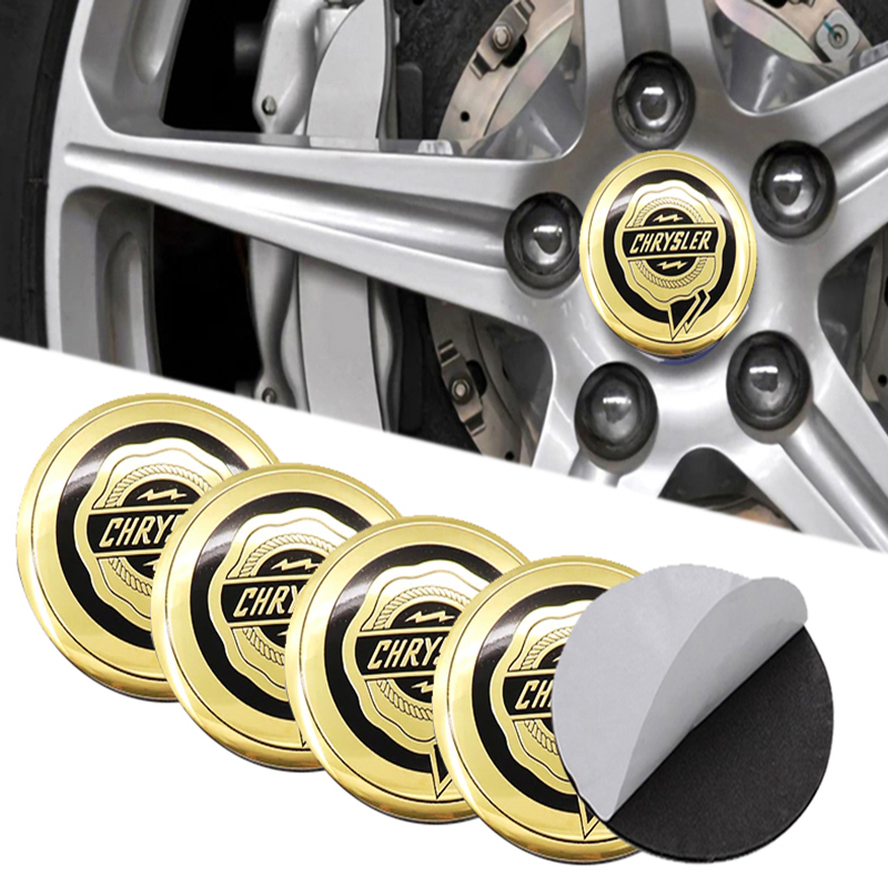 طقم غطاء محور اطارات السيارة لصق مقاس 56 ملم، أغطية مقاومة للغبار والصدأ والماء، ملحقات لاصقة لتزيين جنط العجلة – متوافق مع كريسلر دهبى