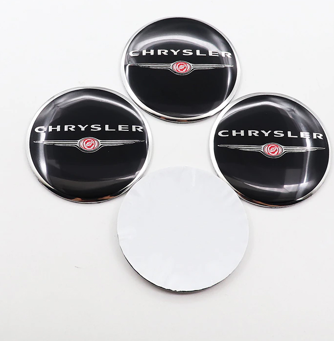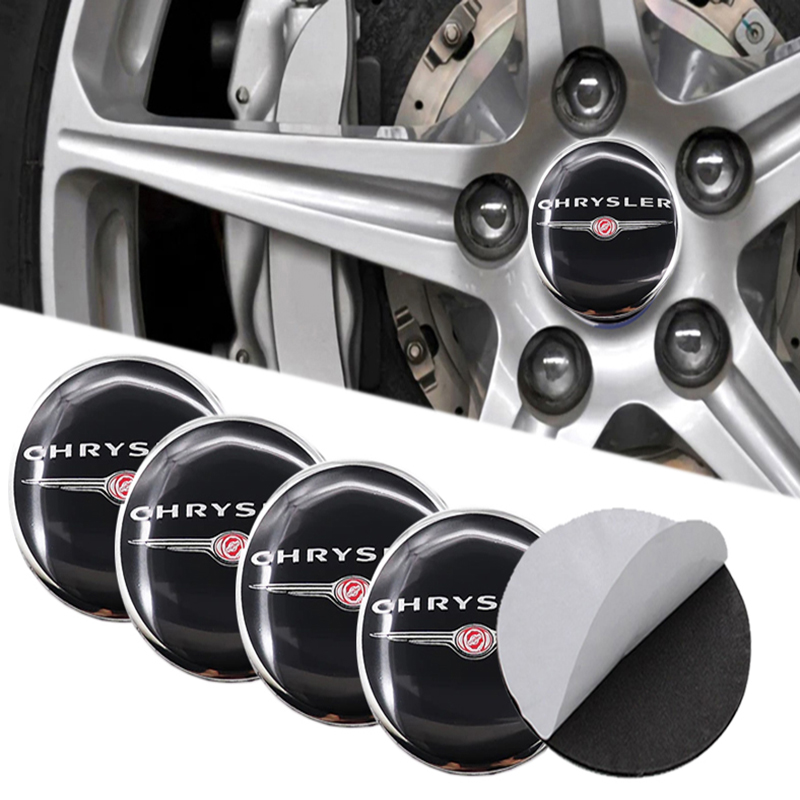طقم غطاء محور اطارات السيارة لصق مقاس 56 ملم، أغطية مقاومة للغبار والصدأ والماء، ملحقات لاصقة لتزيين جنط العجلة – متوافق مع كريسلر اسود