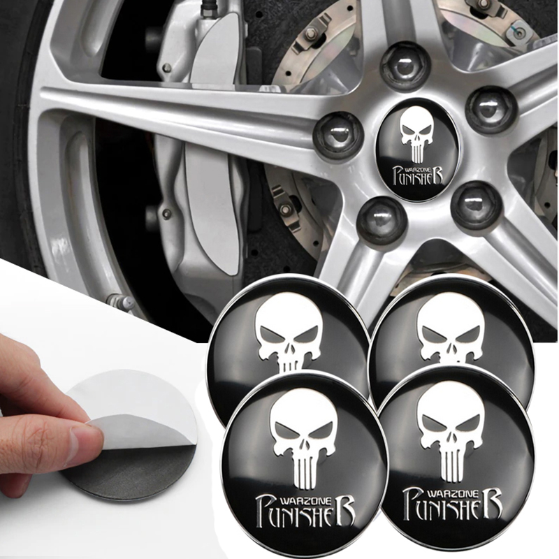 طقم غطاء محور اطارات السيارة لصق مقاس 56 ملم، أغطية مقاومة للغبار والصدأ والماء، ملحقات لاصقة لتزيين جنط العجلة – متوافق مع جمجمة اسود فضى