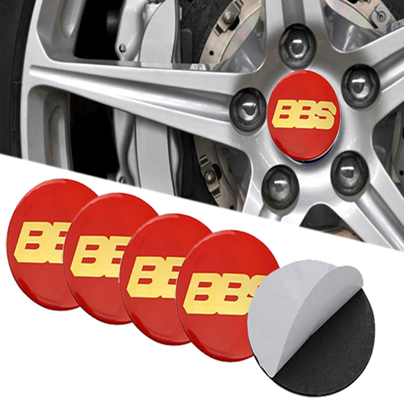 طقم غطاء محور اطارات السيارة لصق مقاس 56 ملم، أغطية مقاومة للغبار والصدأ والماء، ملحقات لاصقة لتزيين جنط العجلة متوافقة مع بى بى اس BBS احمر كلمة دهبى