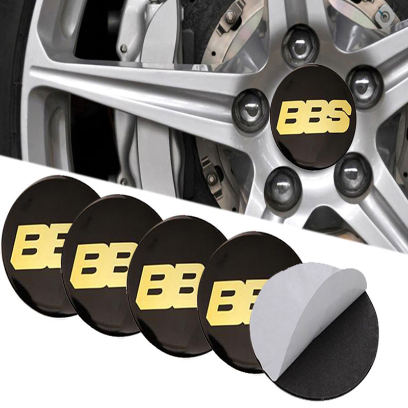 طقم غطاء محور اطارات السيارة لصق مقاس 56 ملم، أغطية مقاومة للغبار والصدأ والماء، ملحقات لاصقة لتزيين جنط العجلة متوافقة مع بى بى اس BBS اسود كلمة دهبى