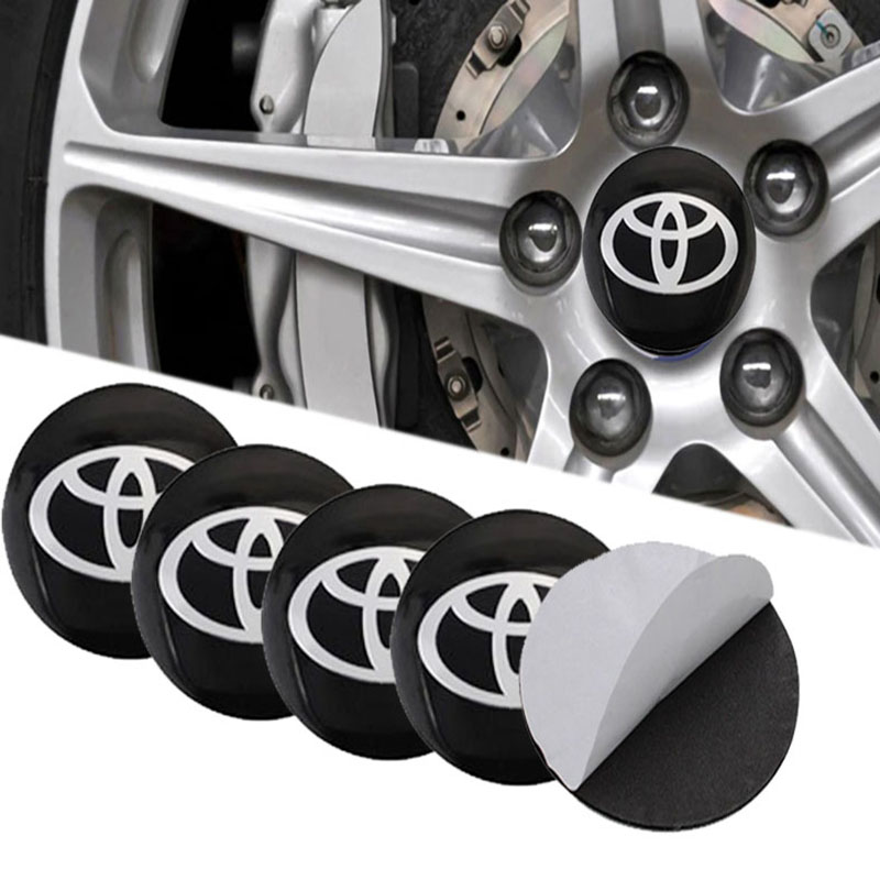 طقم غطاء محور اطارات السيارة لصق مقاس 56 ملم، أغطية مقاومة للغبار والصدأ والماء، ملحقات لاصقة لتزيين جنط العجلة متوافقة مع تويوتا اسود