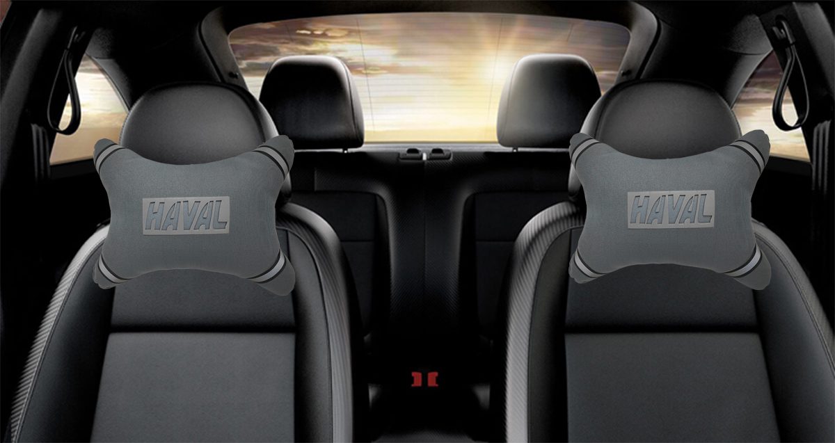 طقم مسند راس لمقعد السيارة وسادة مبطنة فايبر تصميم مريح ومميز وخامات عالية الجودة بشعار بارز عاكس – هافال – لون رمادى -2 قطعة – من كابر تريد